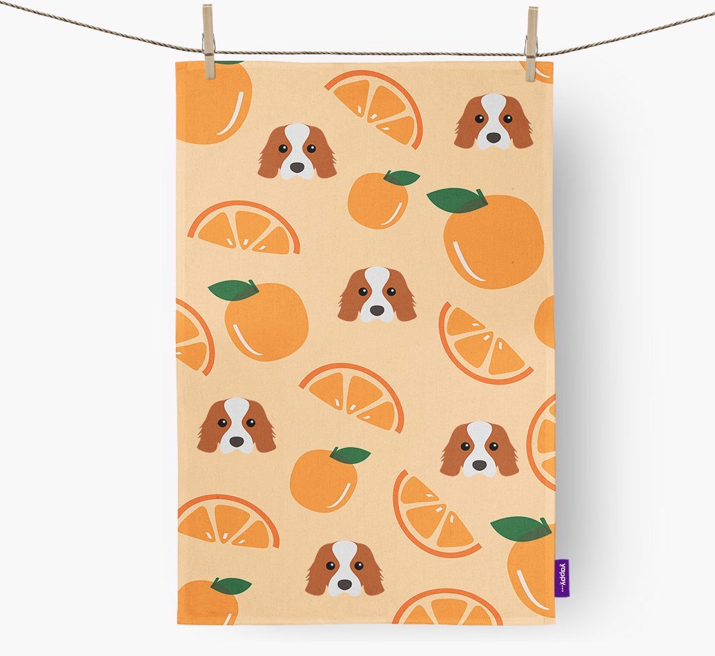 'Fruit Pattern' - Personalized Cavalier King Charles Spaniel Dish Towel (Various Patterns)