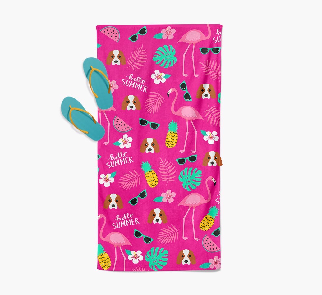 Flamingos & Dogs: Personalized Cavalier King Charles Spaniel Towel