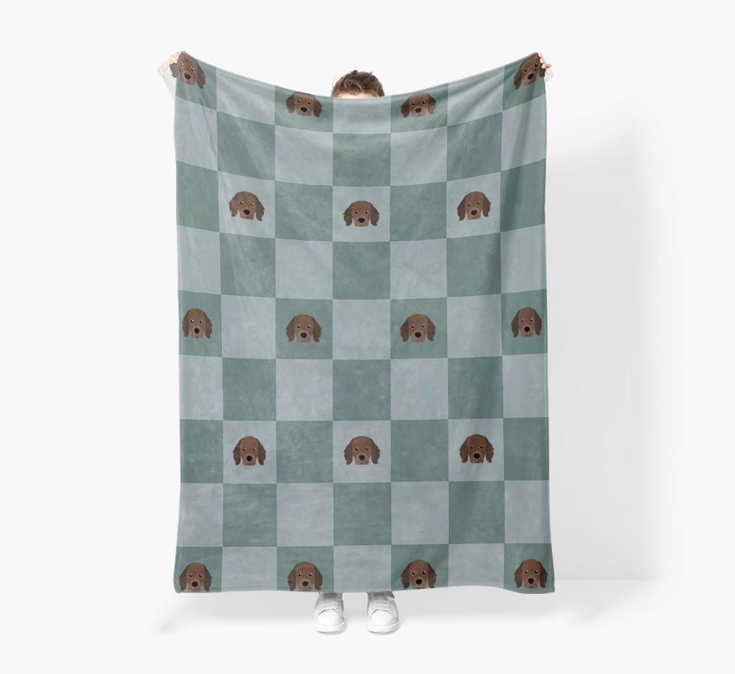 'Checkboard' - Personalized Cavapom Blanket: Premium Sherpa Fleece
