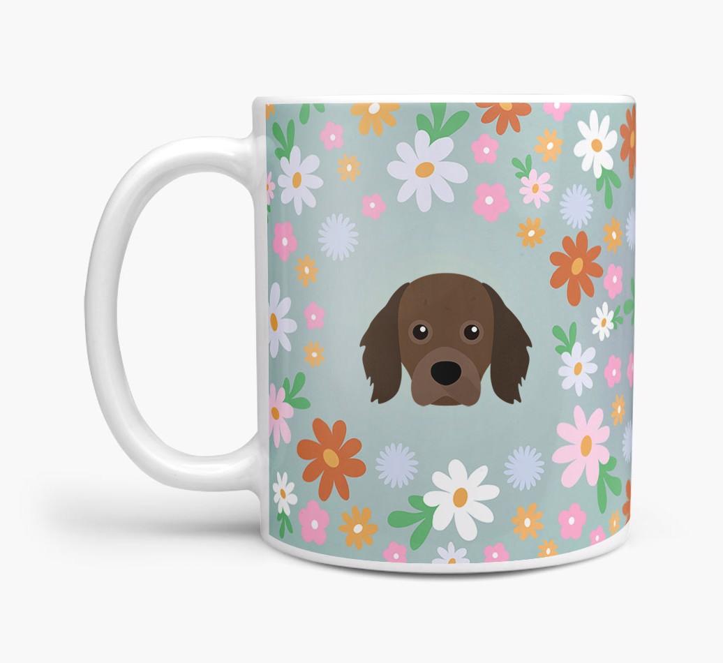 Featuring a colorful bunch of flowers, this mug is printed with the words 'woofly grandma' on one side of the mug and your Cavapom's cute icon on the other. Bloomin' lovely!