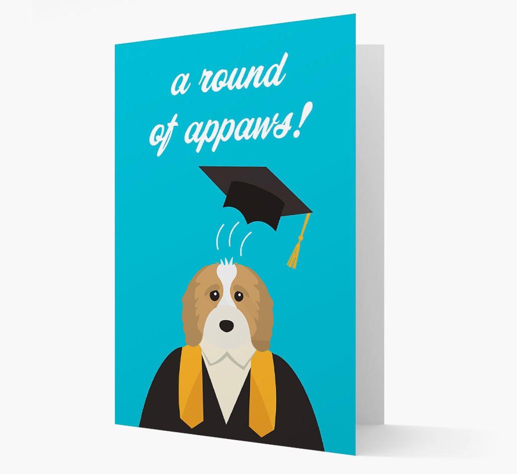 Featuring our Cavapoo icon looking supaw smart in a cap and gown, this card is a fun way to congratulate a Cavapoo lover on their exams or for graduating.
