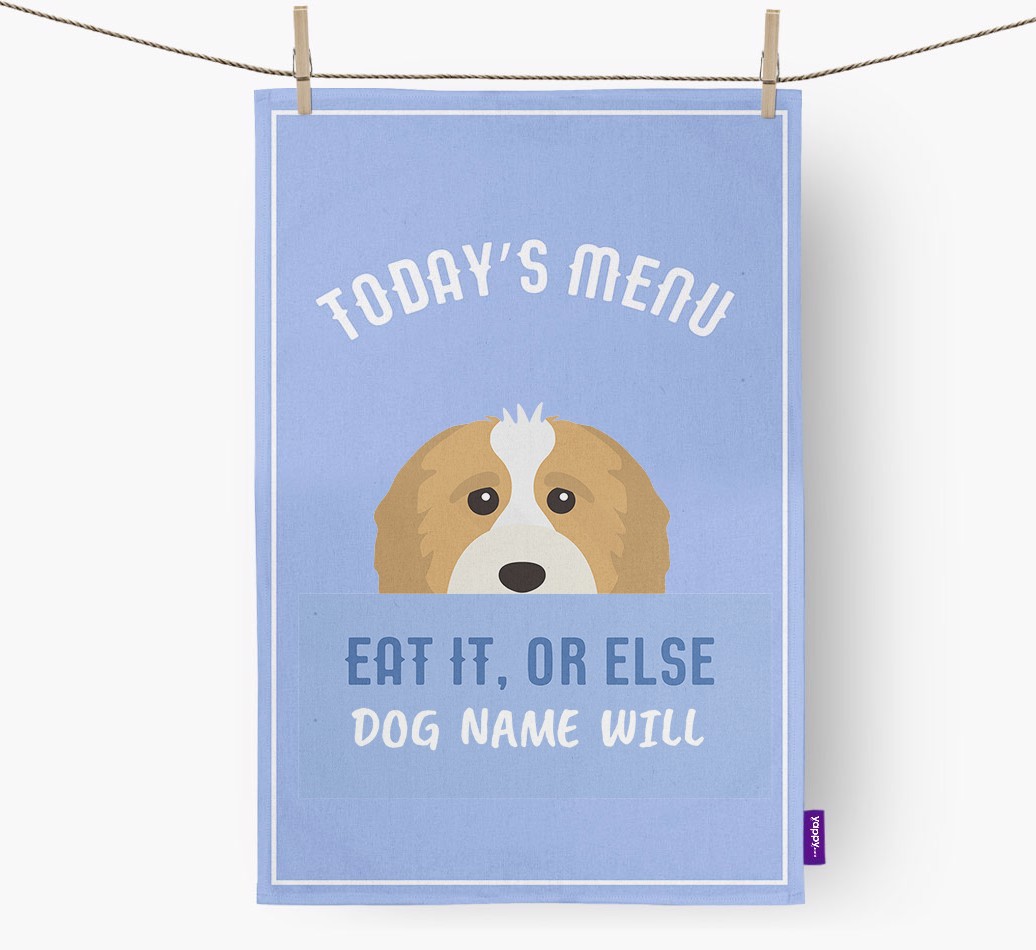 'Eat It, Or Else...' - Personalized Cavapoo Dish Towel