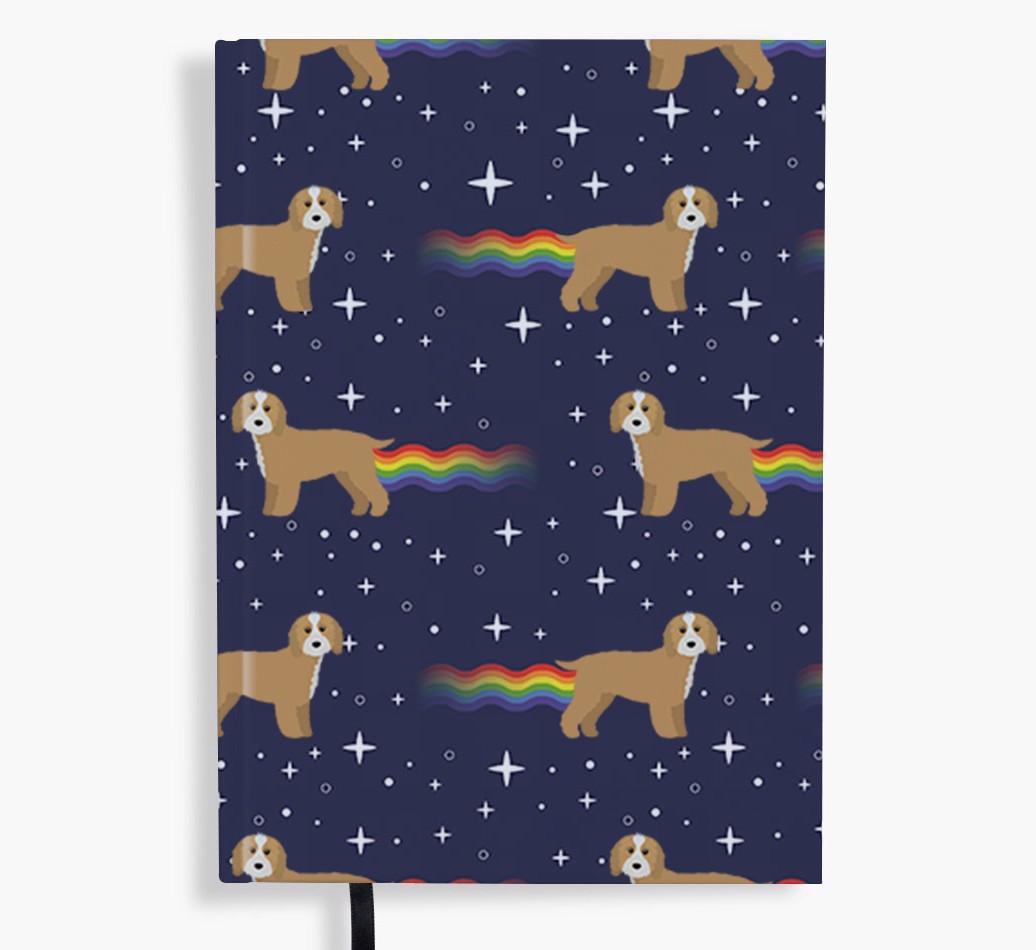 Featuring your cheeky Cavapoo, lots of twinkling stars and available in a range of bold colors, this fun notebook is truly out of this world.