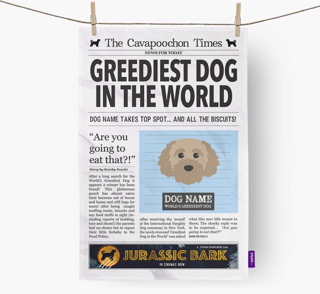 This unique dish towel puts Cavapoochon truly in the spotlight (as if they weren’t already). It features a Yappy exclusive Cavapoochon mug shot icon as well as two smaller Cavapoochon silhouettes.