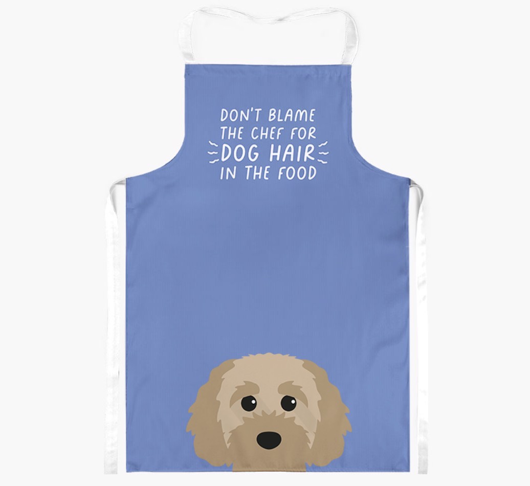 This funny apron will warn friends and family not to blame the chef for dog hairs in their food, they have Cavapoochon to thank for that!