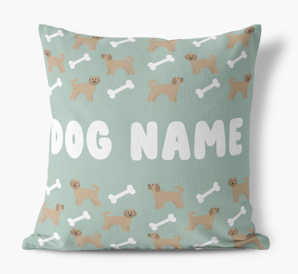 Personalized with Cavapoochon’s name against a background of Cavapoochon icons and bones, this gorgeous pillow is full of pawsonality.