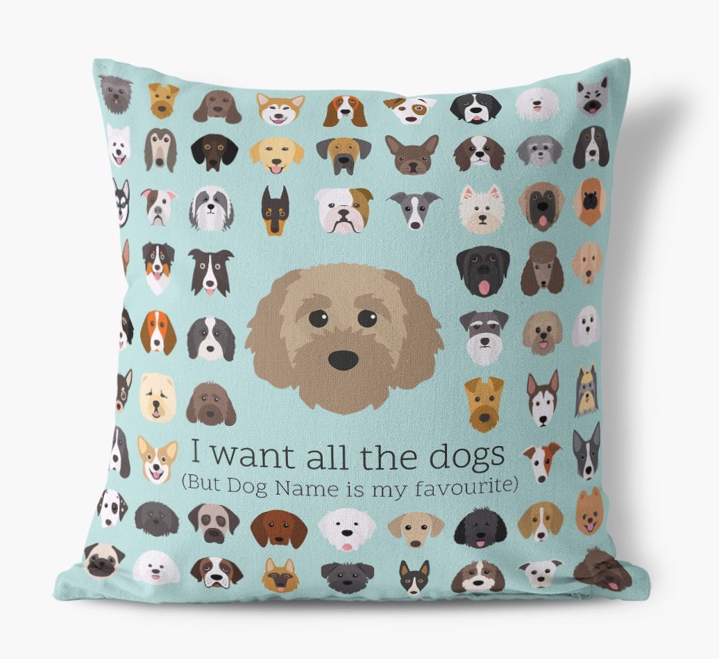 I Want All the Dogs: Personalized Cavapoochon Canvas Pillow