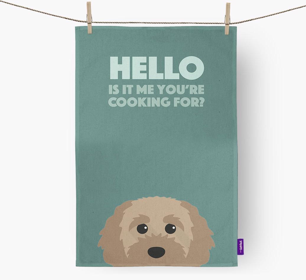 This gorgeous dish towel is sure to delight every Cavapoochon pawrent, especially as it stars their pup asking their favorite question, 'is it me you're cooking for?'