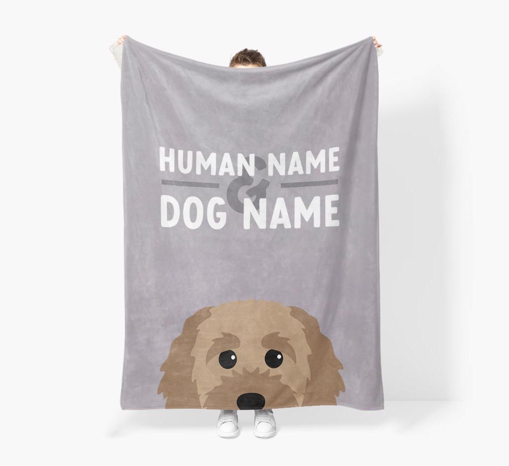 Human & Dog Name: Personalized Cavapoochon Premium Sherpa Fleece Blanket