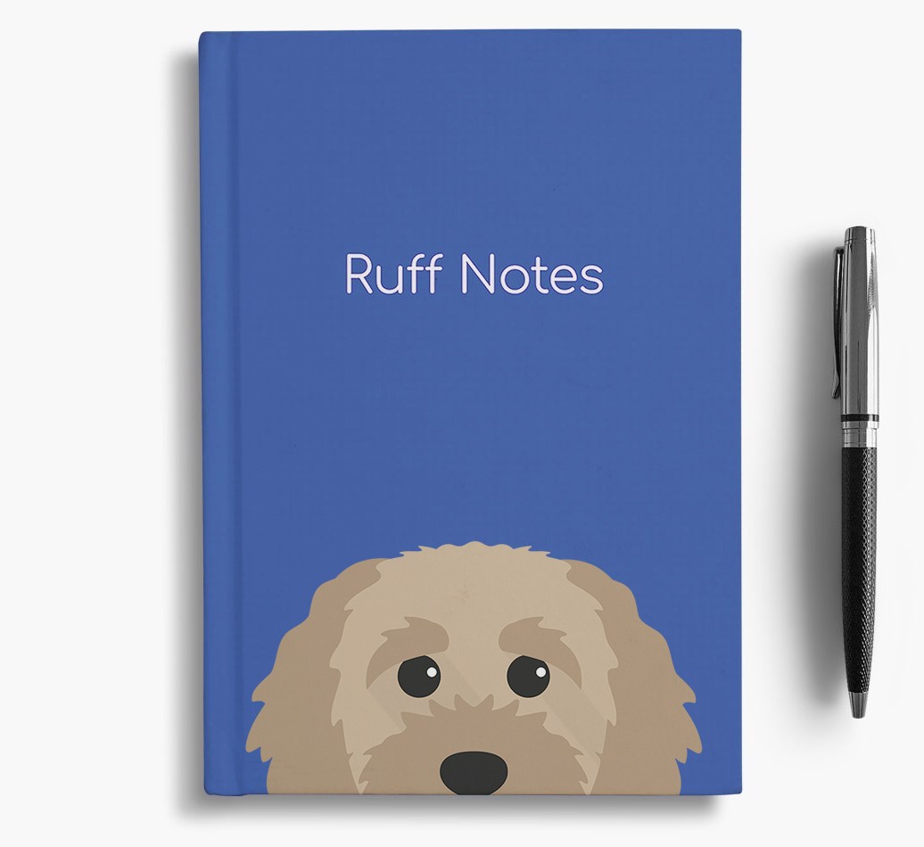 The front cover features our exclusive Cavapoochon peeking icon and is printed with the words, ‘Ruff Notes’, whilst the back is printed with the words ‘Live. Laugh. Woof.’.