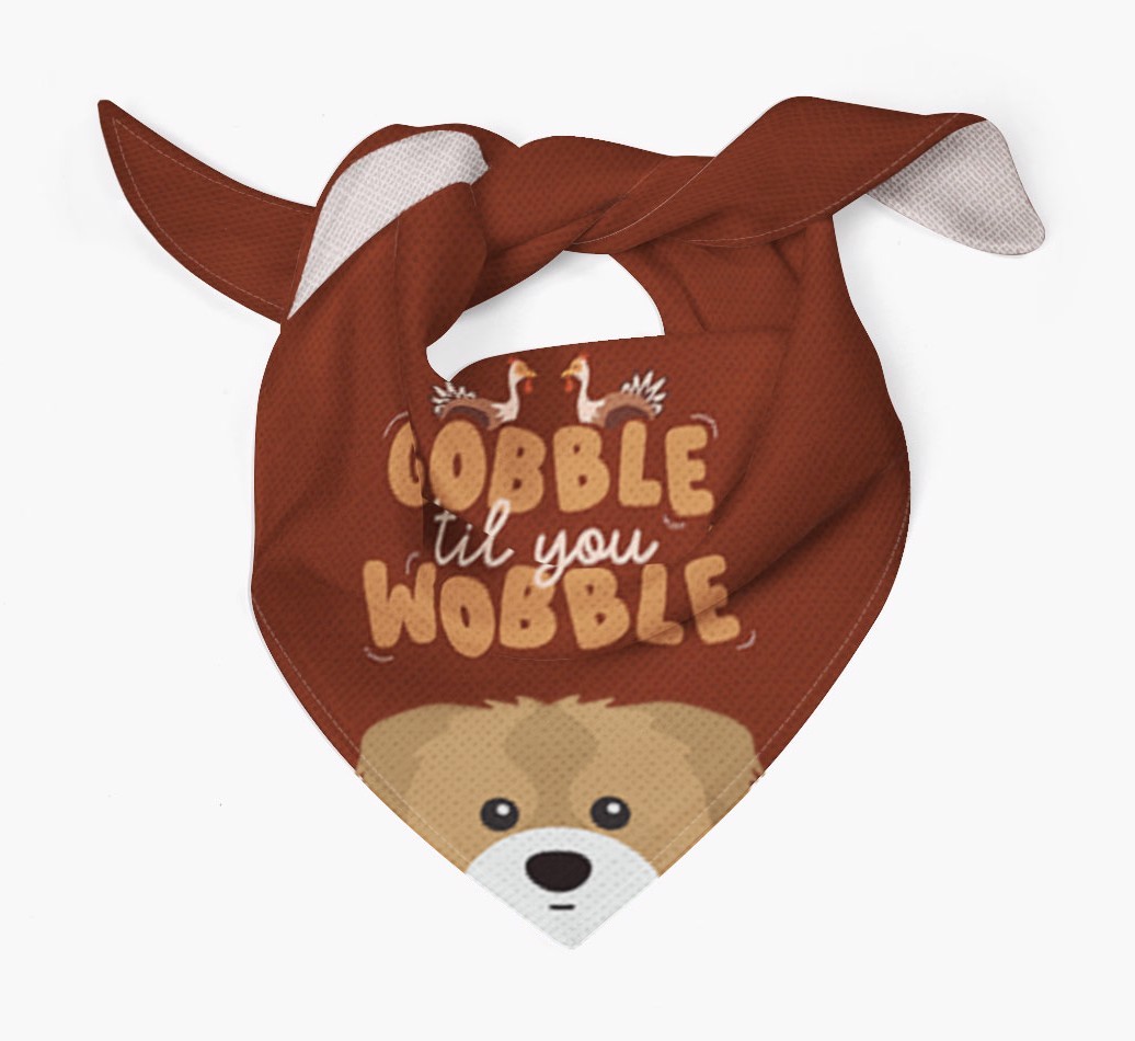This cute custom bandana is printed with the phrase of the season, "gobble til you wobble"!