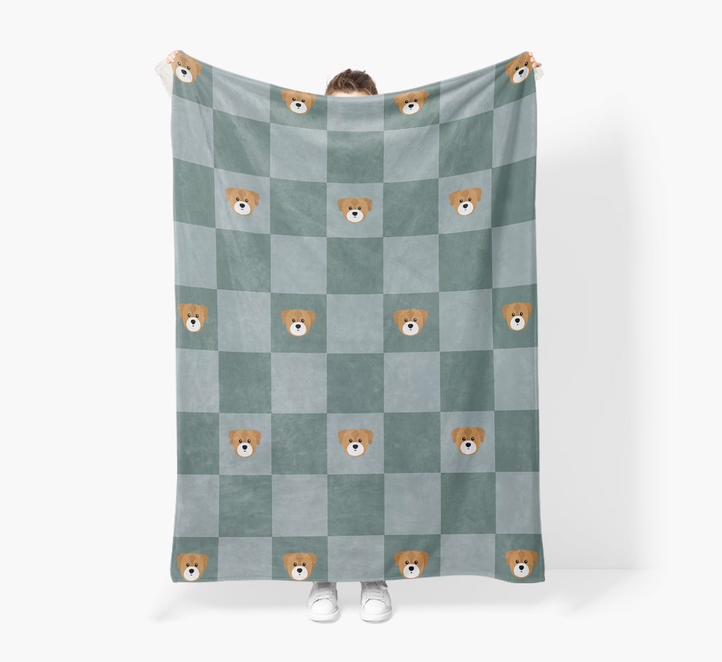 'Checkboard' - Personalized Cava Tzu Blanket: Premium Sherpa Fleece