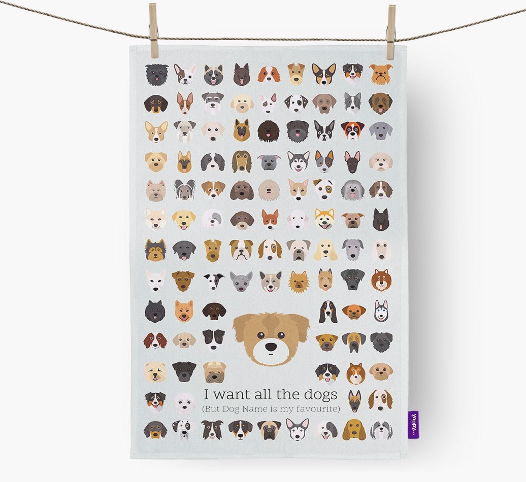 'I Want All the Dogs' - Personalized Cava Tzu Dish Towel