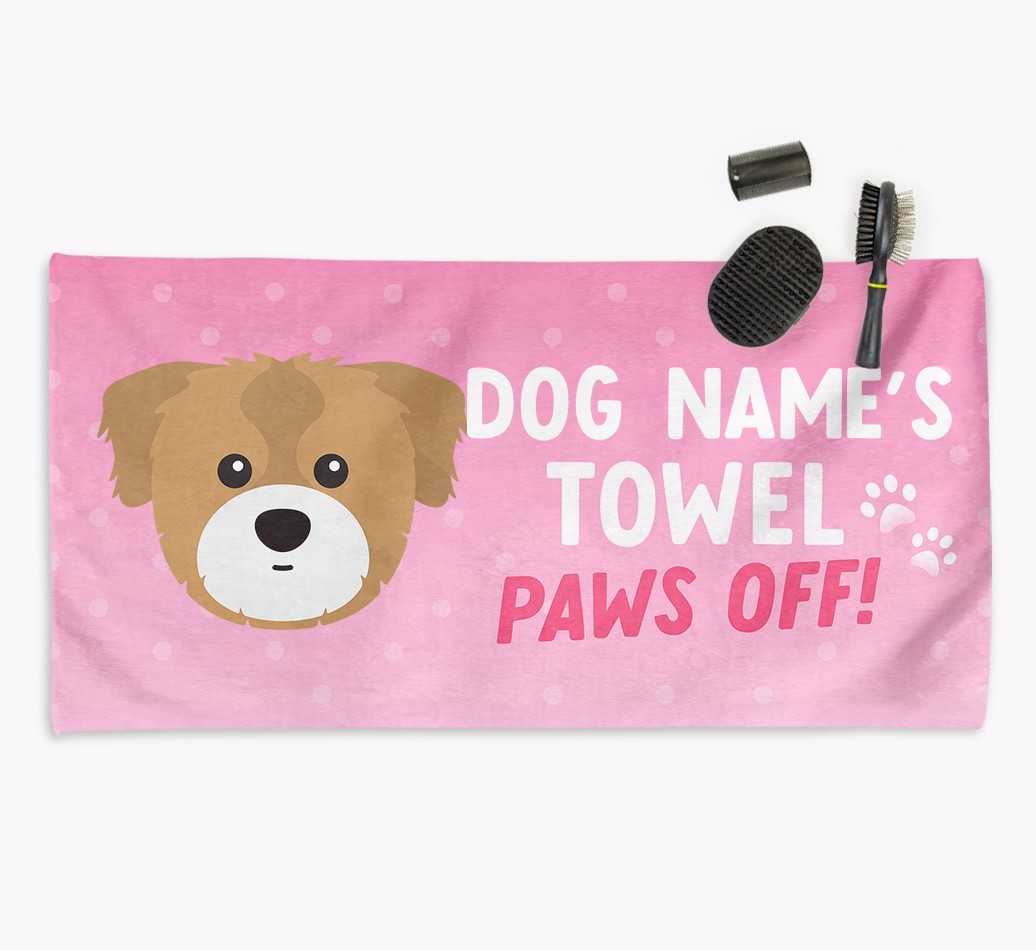 Perfect for messy pups and for pampering your Cava Tzu at bathtime, this soft and absorbent towel is made for cleaning your mucky pup and drying them off in a flash. It's personalized with Cava Tzu's name and icon and is printed with a message for everyone else to keep their paws off it!