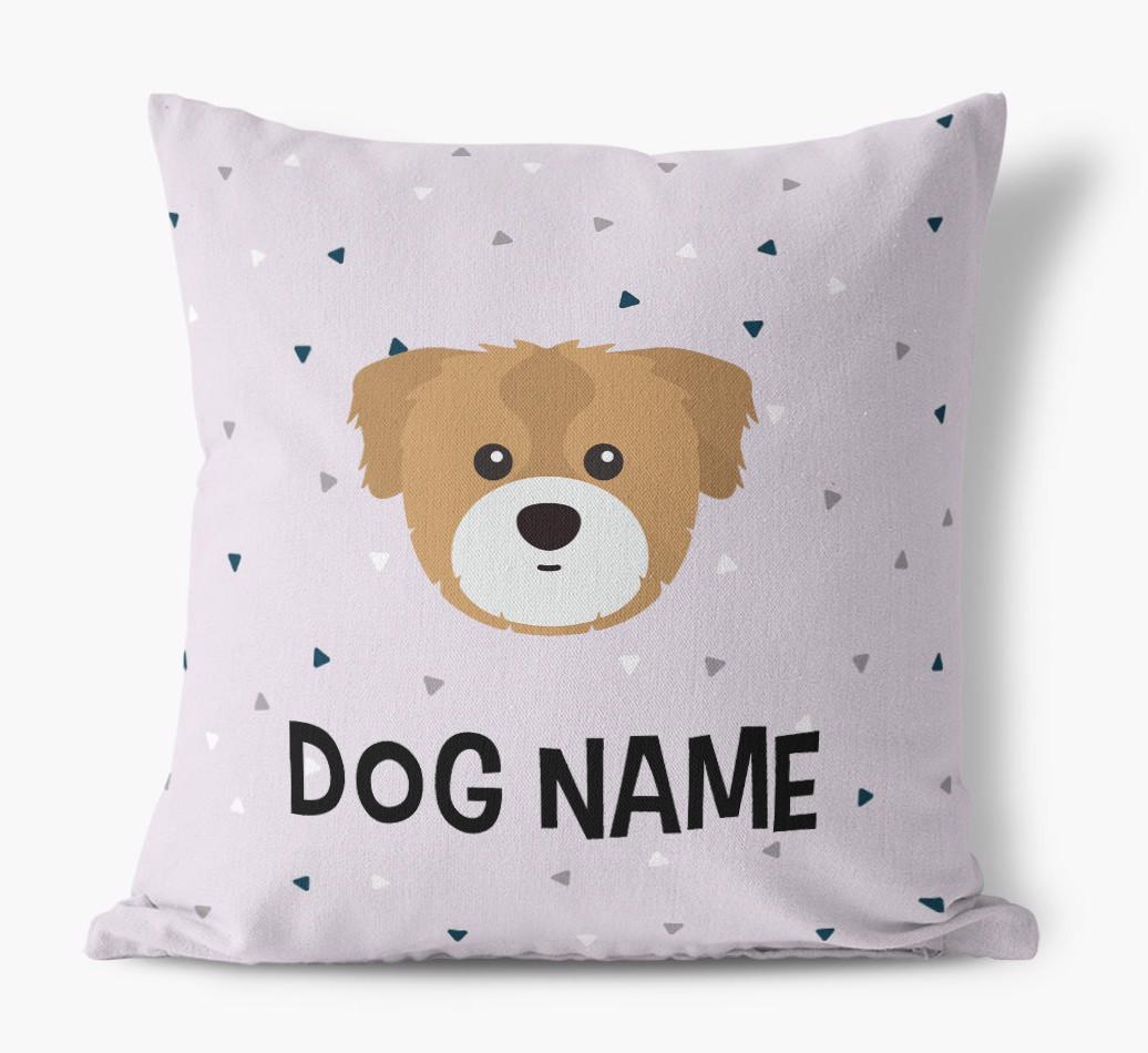 Featuring a stylish triangle pattern, this pillow is available in 5 wagnificent colors and is personalized just for Your Cava Tzu, making is extra special.