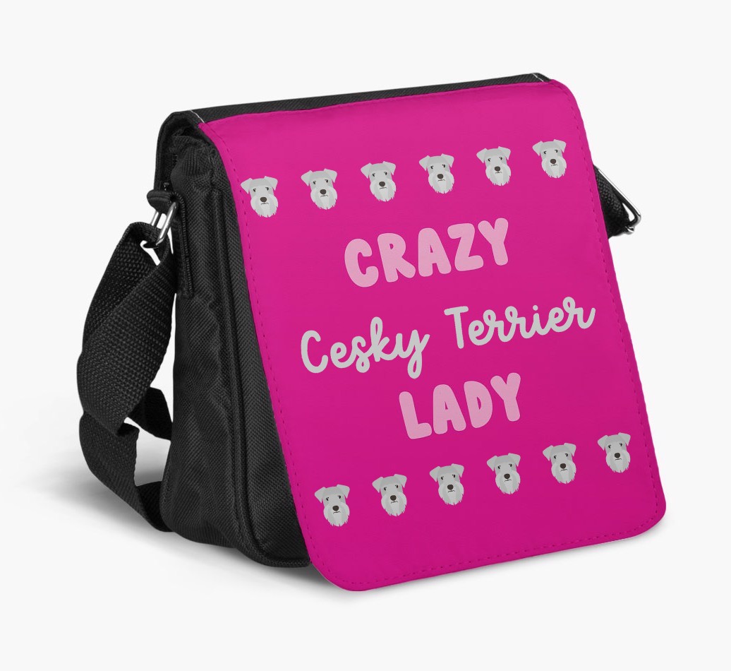 'Crazy Cesky Terrier Lady' - Personalized Dog Walking Bag with Cesky Terrier Icons