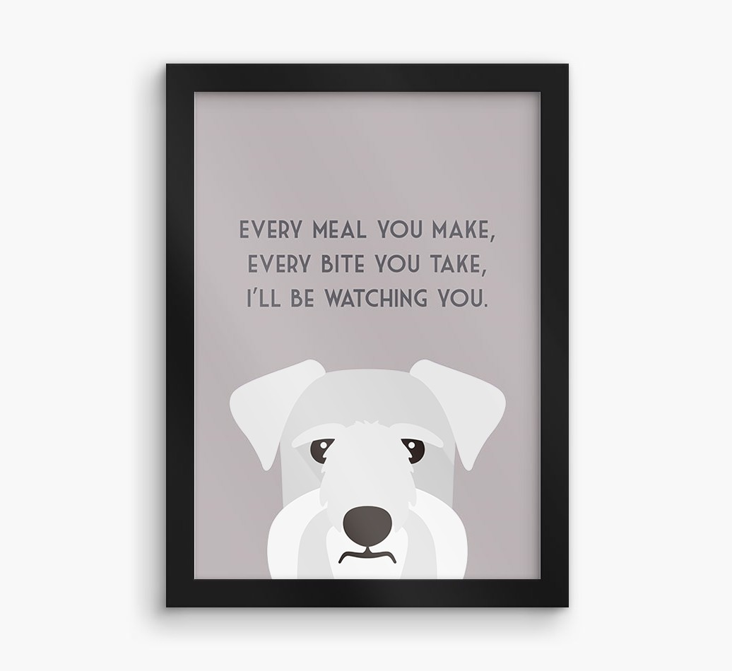 Printed with the words, ‘Every meal you make, every bite you take, I’ll be watching you’ and complete with our cute Cesky Terrier peeking from the bottom of the design, this artwork will look great on display in the kitchen or anywhere Cesky Terrier likes to watch you eat!