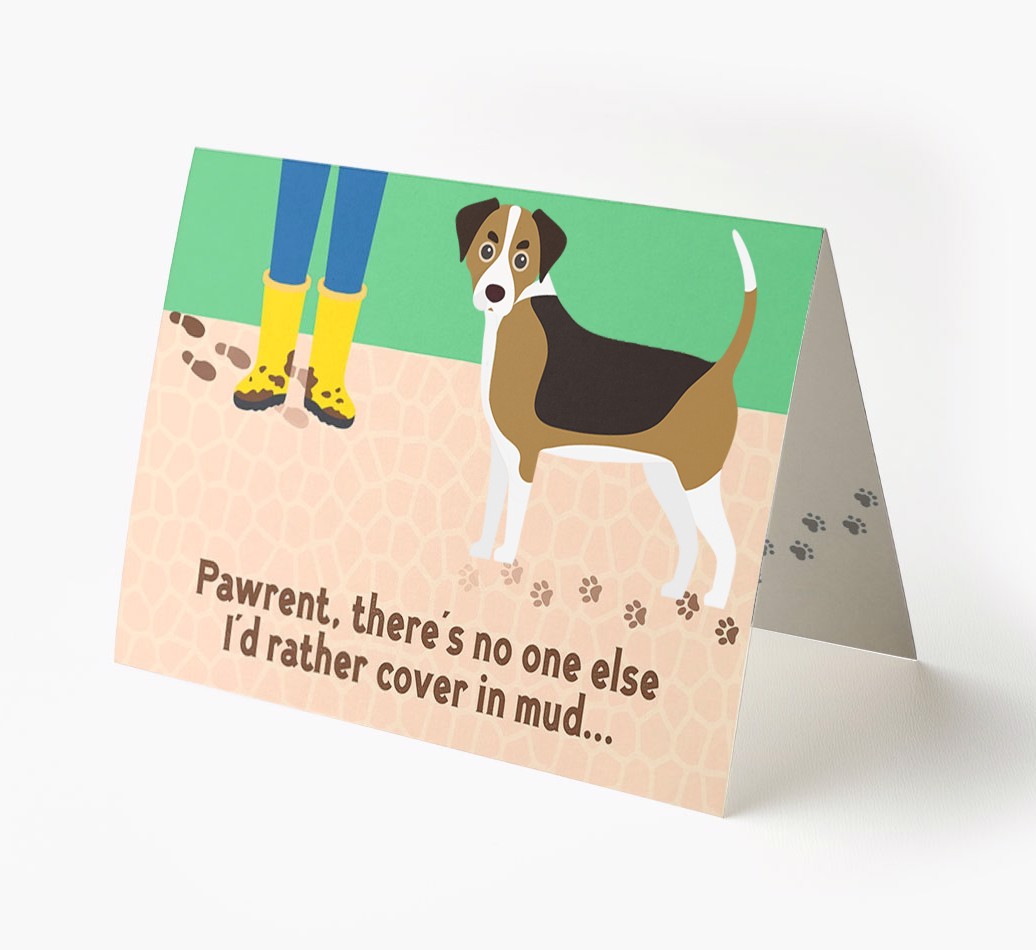 This comical card is sure to delight Cheagle's pawrent (without getting muddy), especially as it stars their Cheagle's cheeky icon.