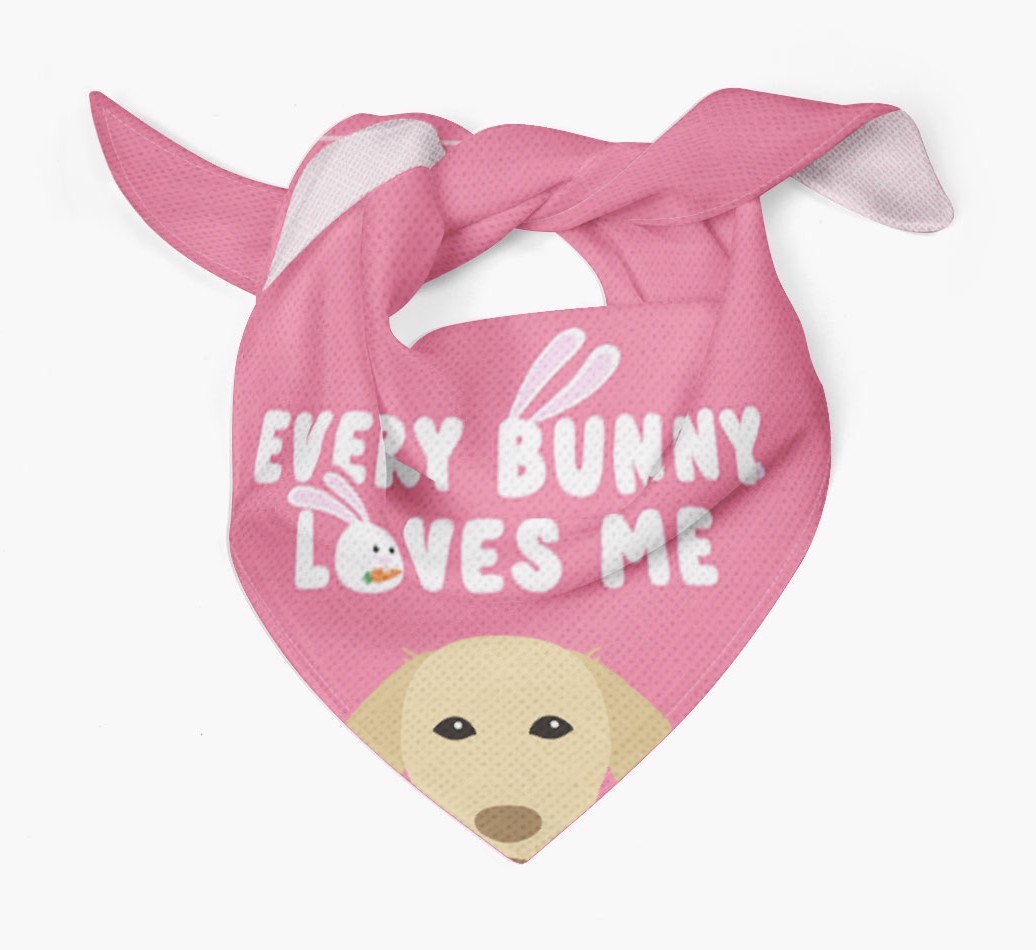 Tailored with the fabulous saying: 'Every Bunny Loves Me', this bandana is the perfect addition to your Chesapeake Bay Retriever's wardrobe! Available in four egg-ceptional colors and personalized with your Chesapeake Bay Retriever's icon, this is the perfect pawchase for Easter!