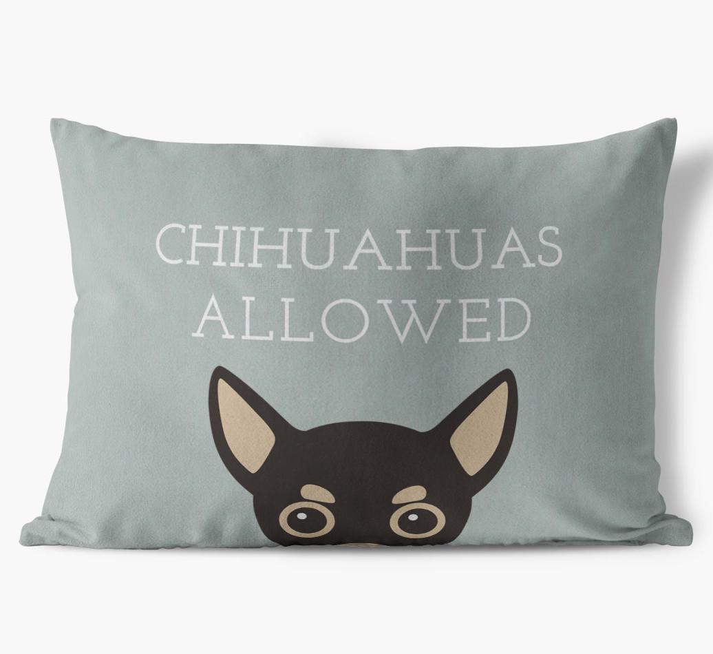 This exclusive, luxurious pillow is printed with the words ‘Chihuahuas Allowed’, which I’m sure Your Chihuahua would definitely approve of.