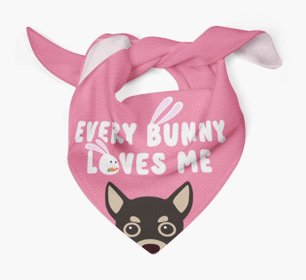 Tailored with the fabulous saying: 'Every Bunny Loves Me', this bandana is the perfect addition to your Chihuahua's wardrobe! Available in four egg-ceptional colors and personalized with your Chihuahua's icon, this is the perfect pawchase for Easter!