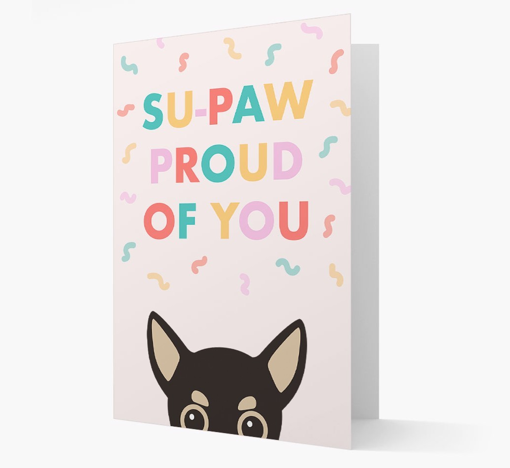 Has your loved one achieved something extra furbulous? Let them know that you and Chihuahua are su-paw proud of them with this cute card!