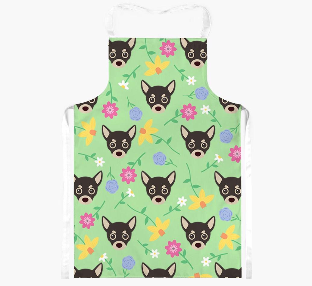 Featuring a gorgeous pattern of flowers and your dog's adorable face, this vibrant apron is bursting with canine charm and flowery fun - perfect for adding a splash of color to your kitchen.