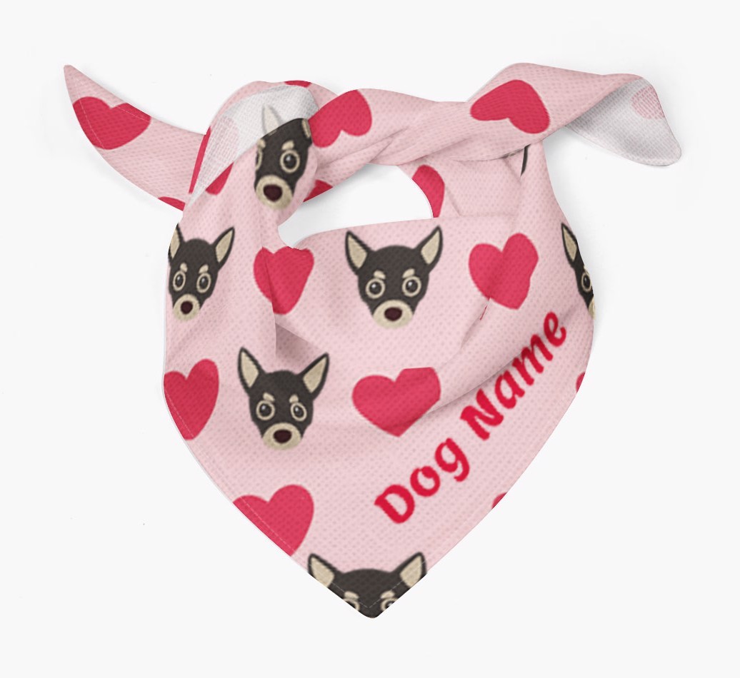 Featuring a pattern of love hearts and Chihuahua icons, this cute bandana is a woofly way for Chihuahua to dress up and share the puppy-love!