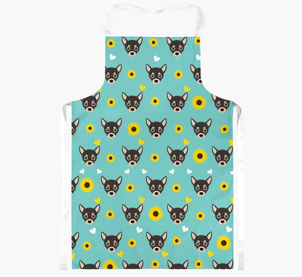 This apron has a delightful sunflower and heart pattern, and best of all - it's personalized with Chihuahua's face too! This cute and colorful apron is sure to put a smile on every dog lover's face.