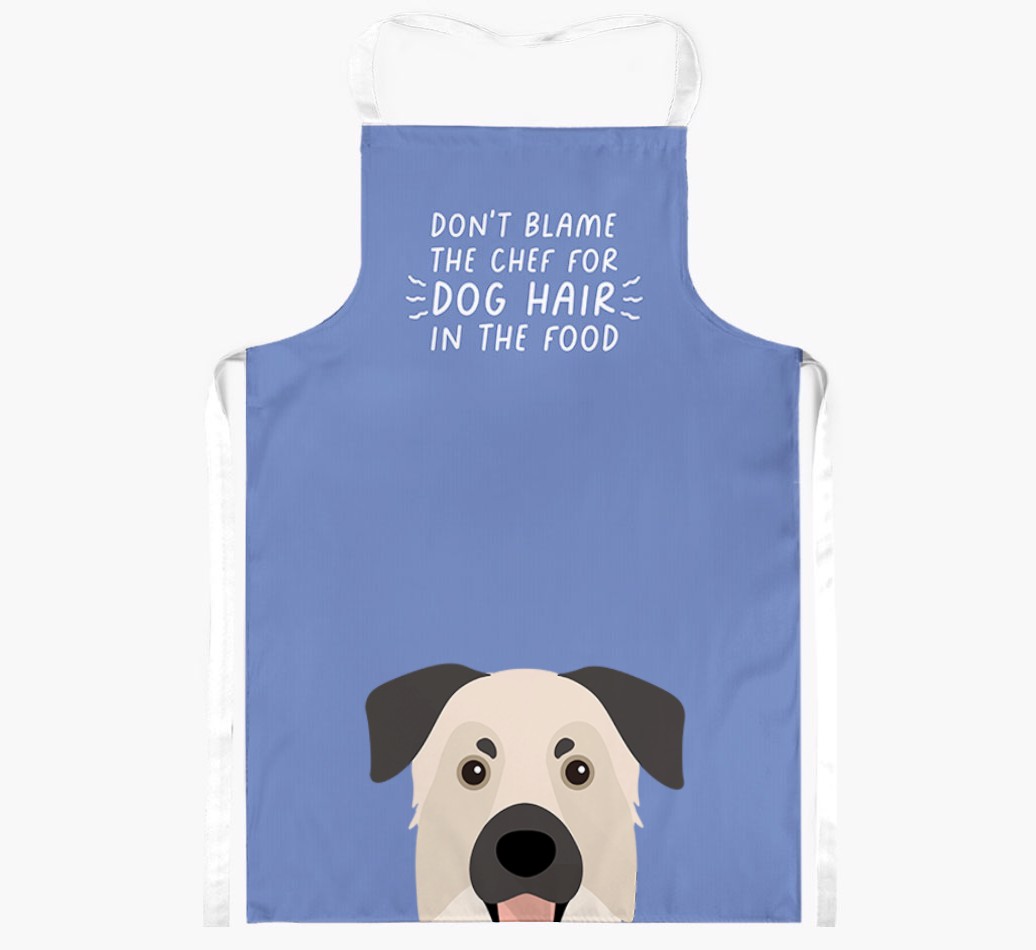 This funny apron will warn friends and family not to blame the chef for dog hairs in their food, they have Chinook to thank for that!