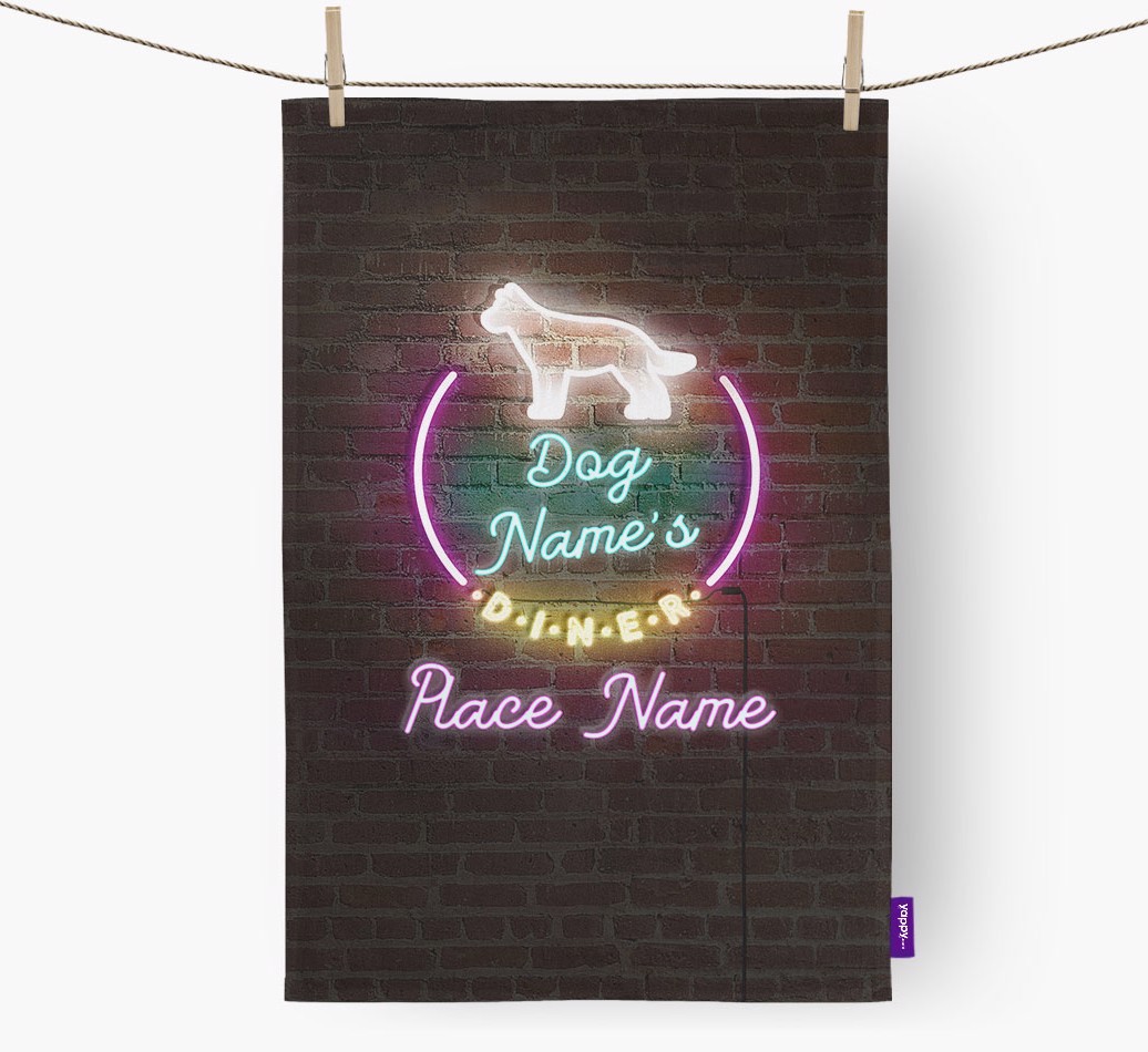 Glowing with Chinook's name, their silhouette, and your chosen city/place name, this dish towel is both a practical and pawsome kitchen essential.