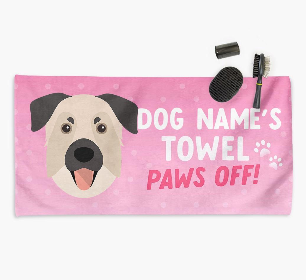 Perfect for messy pups and for pampering your Chinook at bathtime, this soft and absorbent towel is made for cleaning your mucky pup and drying them off in a flash. It's personalized with Chinook's name and icon and is printed with a message for everyone else to keep their paws off it!