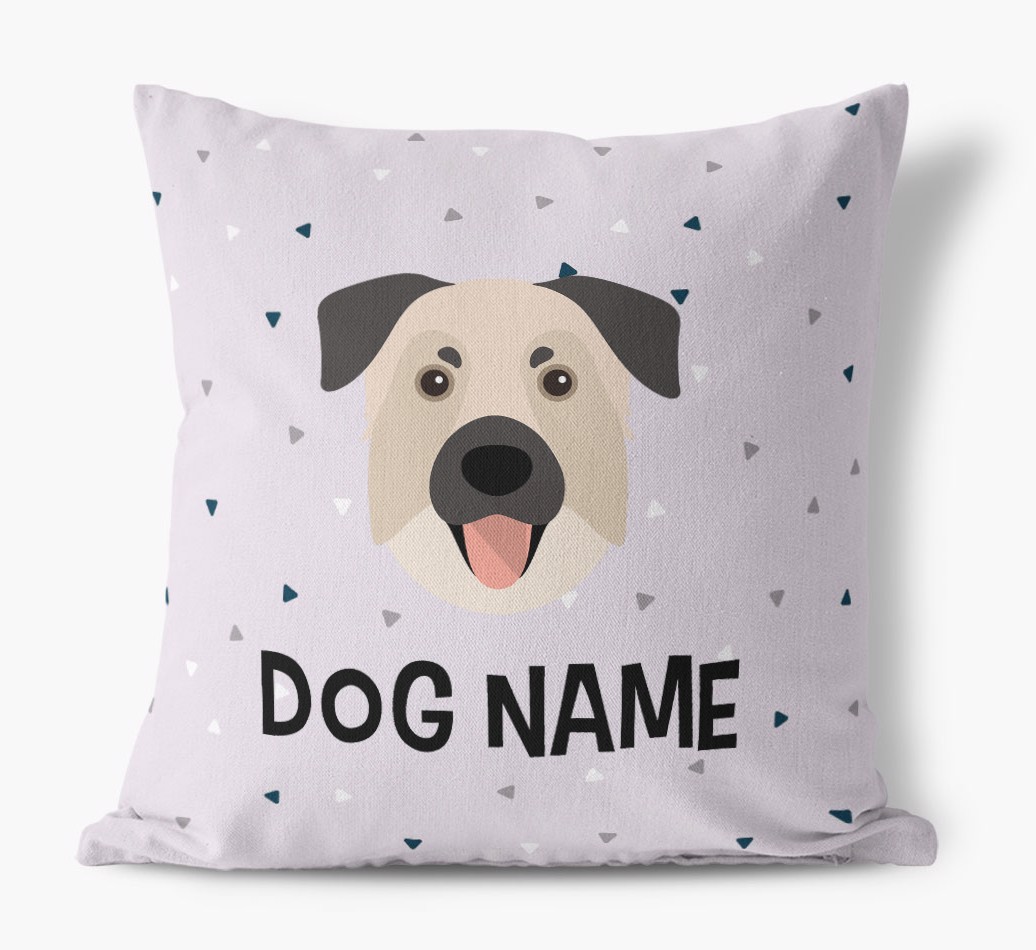 Featuring a stylish triangle pattern, this pillow is available in 5 wagnificent colors and is personalized just for Your Chinook, making is extra special.