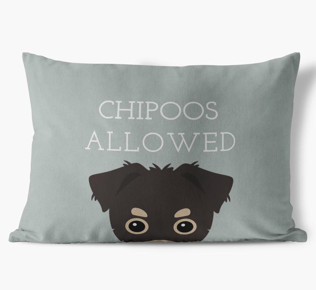 This exclusive, luxurious pillow is printed with the words ‘Chipoos Allowed’, which I’m sure Your Chipoo would definitely approve of.