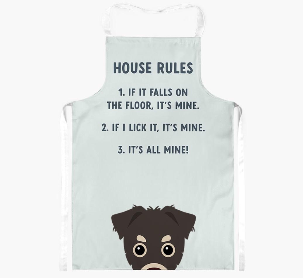 A fun way to show off your greedy pup, this stylish apron is personalized with your furry friend's icon and features their rules when it comes to food.