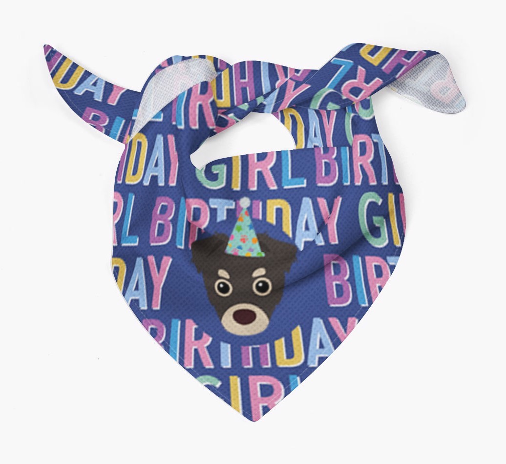 Featuring a text pattern that reads 'birthay girl' and personalized with Chipoo's cute icon (complete with a fun party hat), your Chipoo will look simply pawgeous on their special day when they're wearing this bandana.