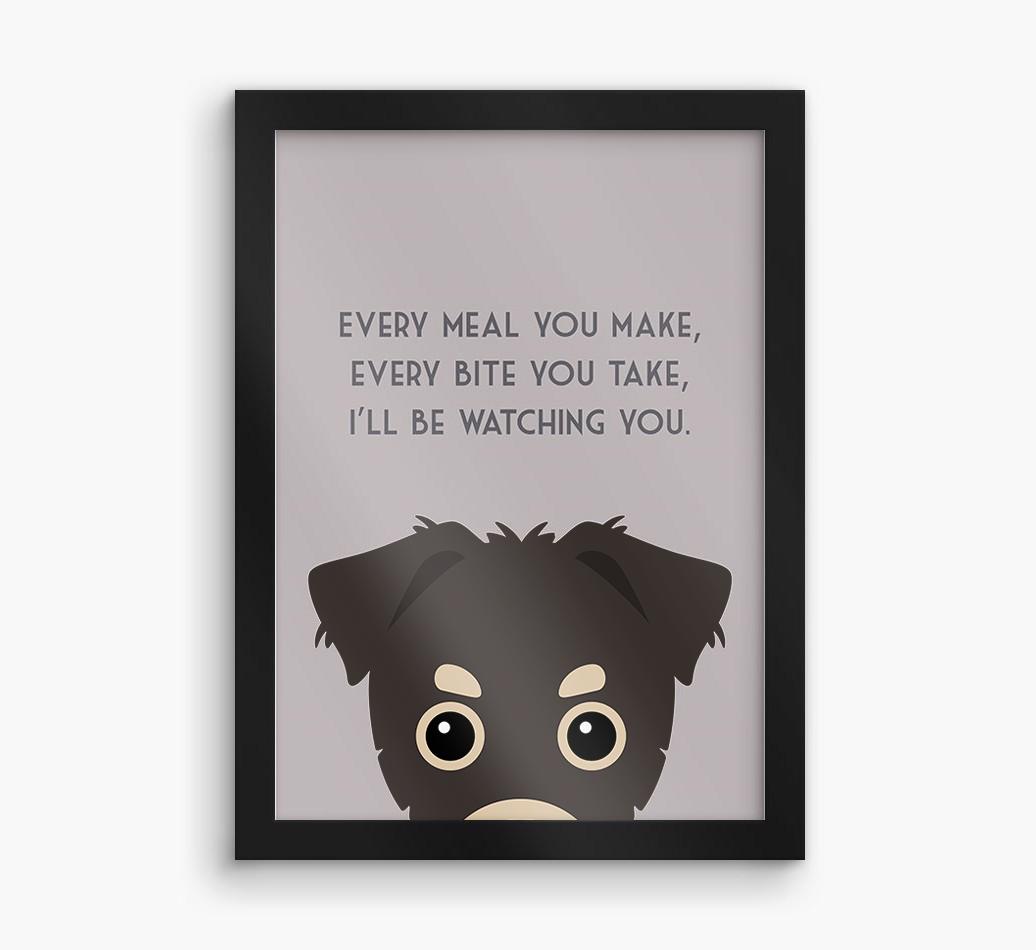Printed with the words, ‘Every meal you make, every bite you take, I’ll be watching you’ and complete with our cute Chipoo peeking from the bottom of the design, this artwork will look great on display in the kitchen or anywhere Chipoo likes to watch you eat!