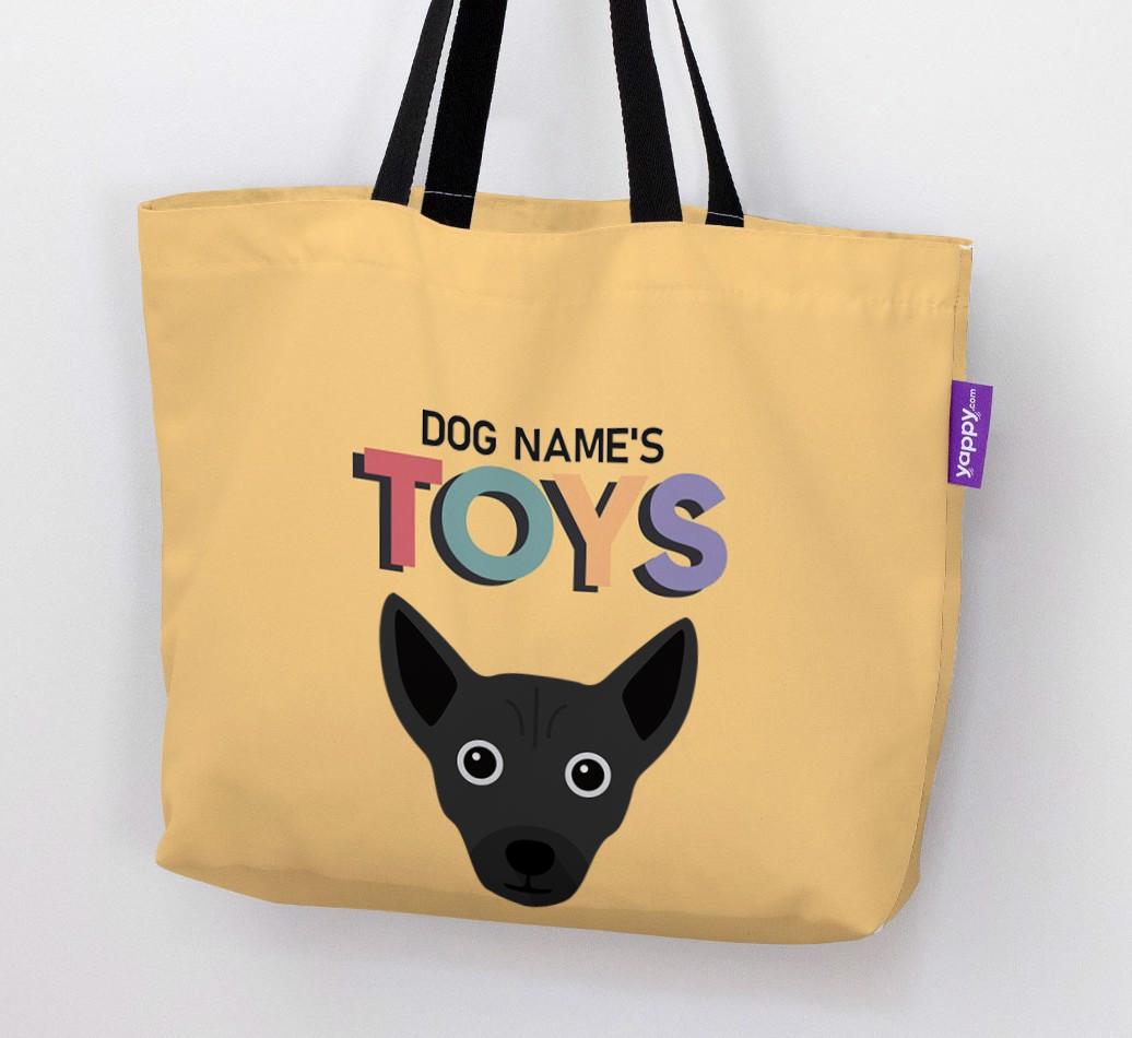 Don’t worry, we’ve got you covered with this pawsonalized canvas bag made for your Chi Staffy Bull’s toy collection!