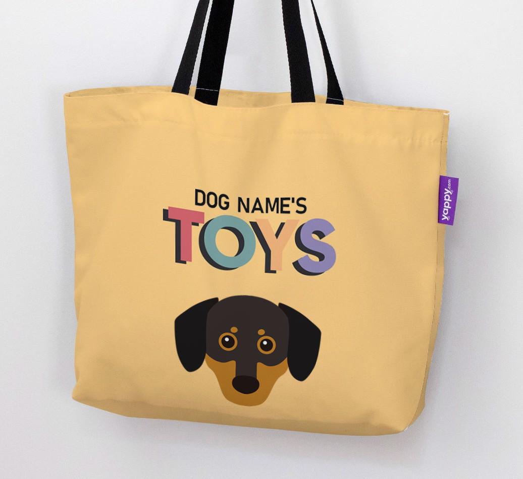 Don’t worry, we’ve got you covered with this pawsonalized canvas bag made for your Chiweenie’s toy collection!