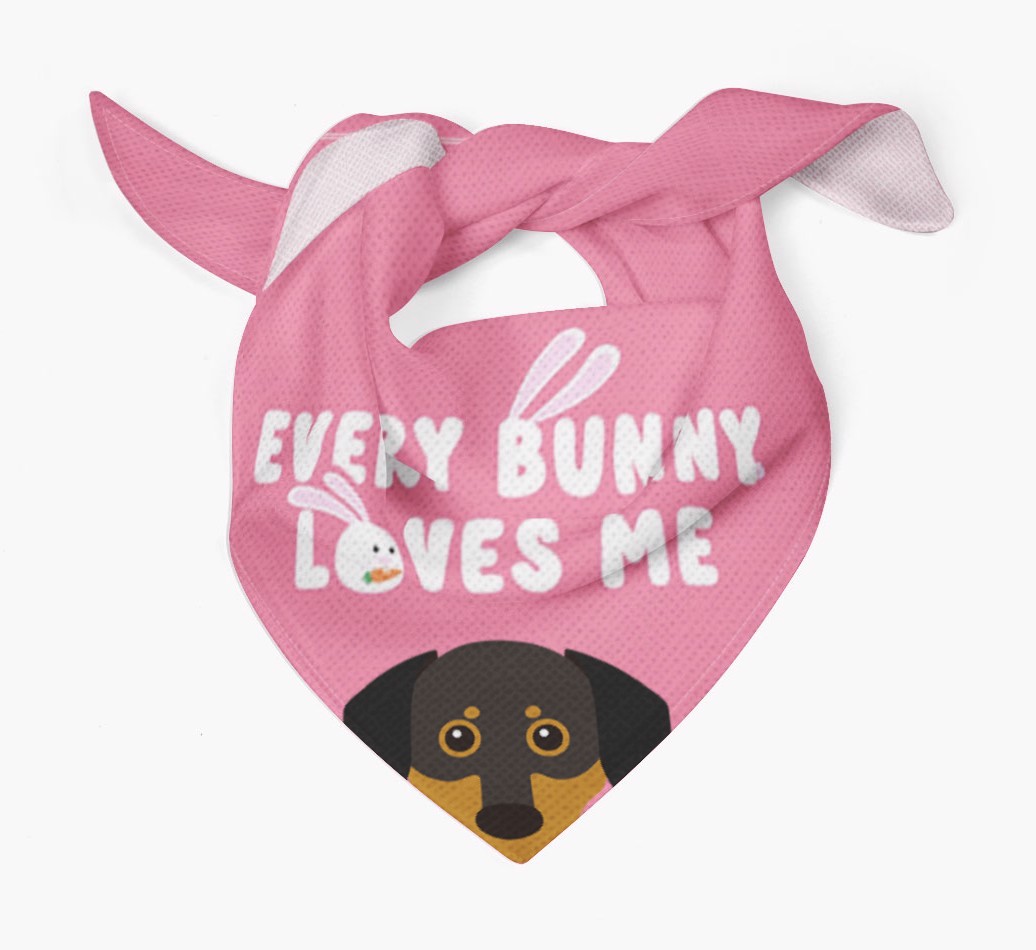 Tailored with the fabulous saying: 'Every Bunny Loves Me', this bandana is the perfect addition to your Chiweenie's wardrobe! Available in four egg-ceptional colors and personalized with your Chiweenie's icon, this is the perfect pawchase for Easter!