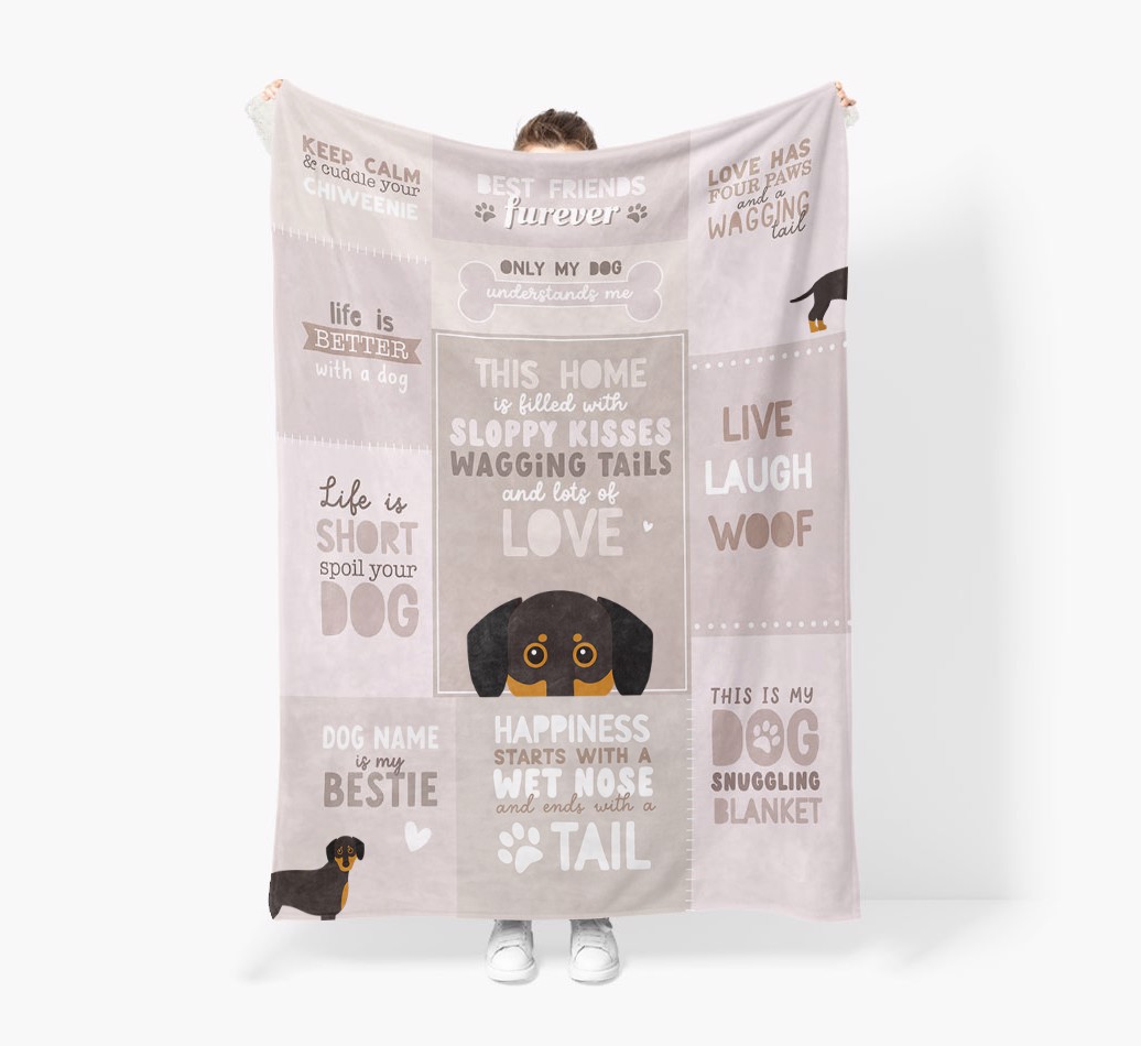 Made from luxuriously soft sherpa fleece material, this blanket is guaranteed to keep you cosy and snug, pawfect night with Chiweenie.