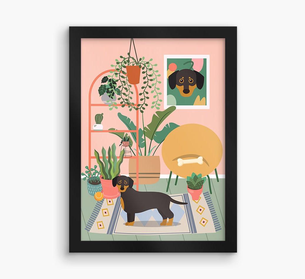 This contemporary piece of wall art pairs a chic living space with lovely pastel tones and a jungle of houseplants. Complete with the one that makes your house a home - Chiweenie! - this print is a wonderful way to display your love for your pooch.