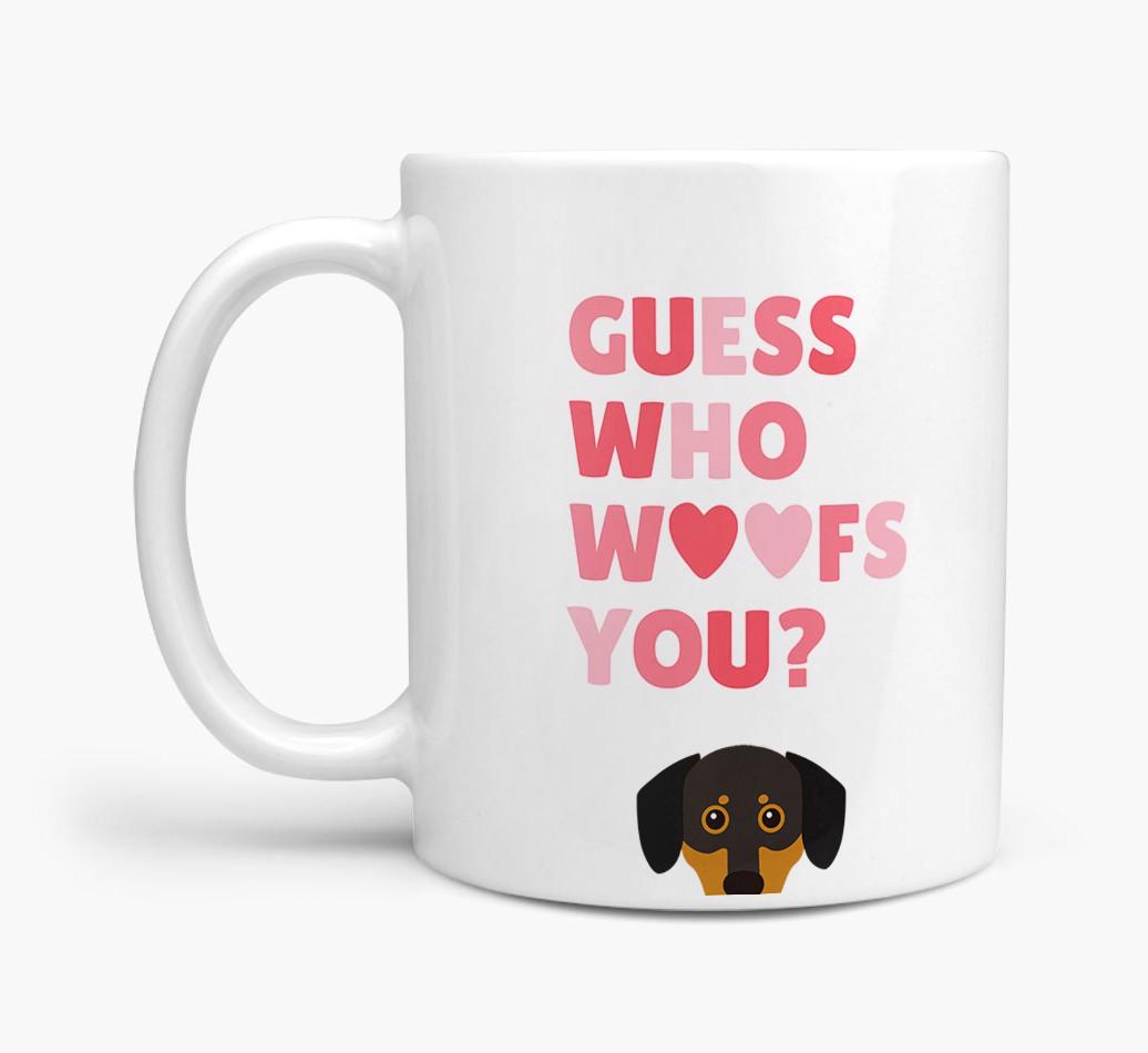 Personalized with Chiweenie's cute face, this adorable mug is perfect for showing off the one who "woofs" you - how sweet!