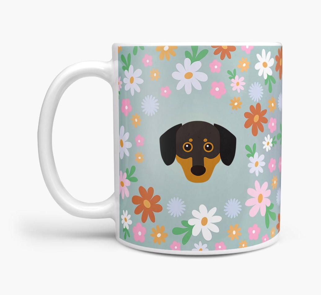 Featuring a colorful bunch of flowers, this mug is printed with the words 'woofly grandma' on one side of the mug and your Chiweenie's cute icon on the other. Bloomin' lovely!