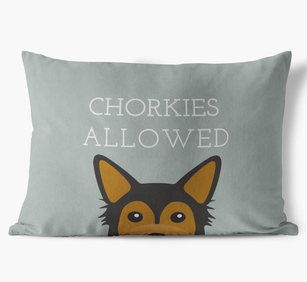 This exclusive, luxurious pillow is printed with the words ‘Chorkies Allowed’, which I’m sure Your Chorkie would definitely approve of.
