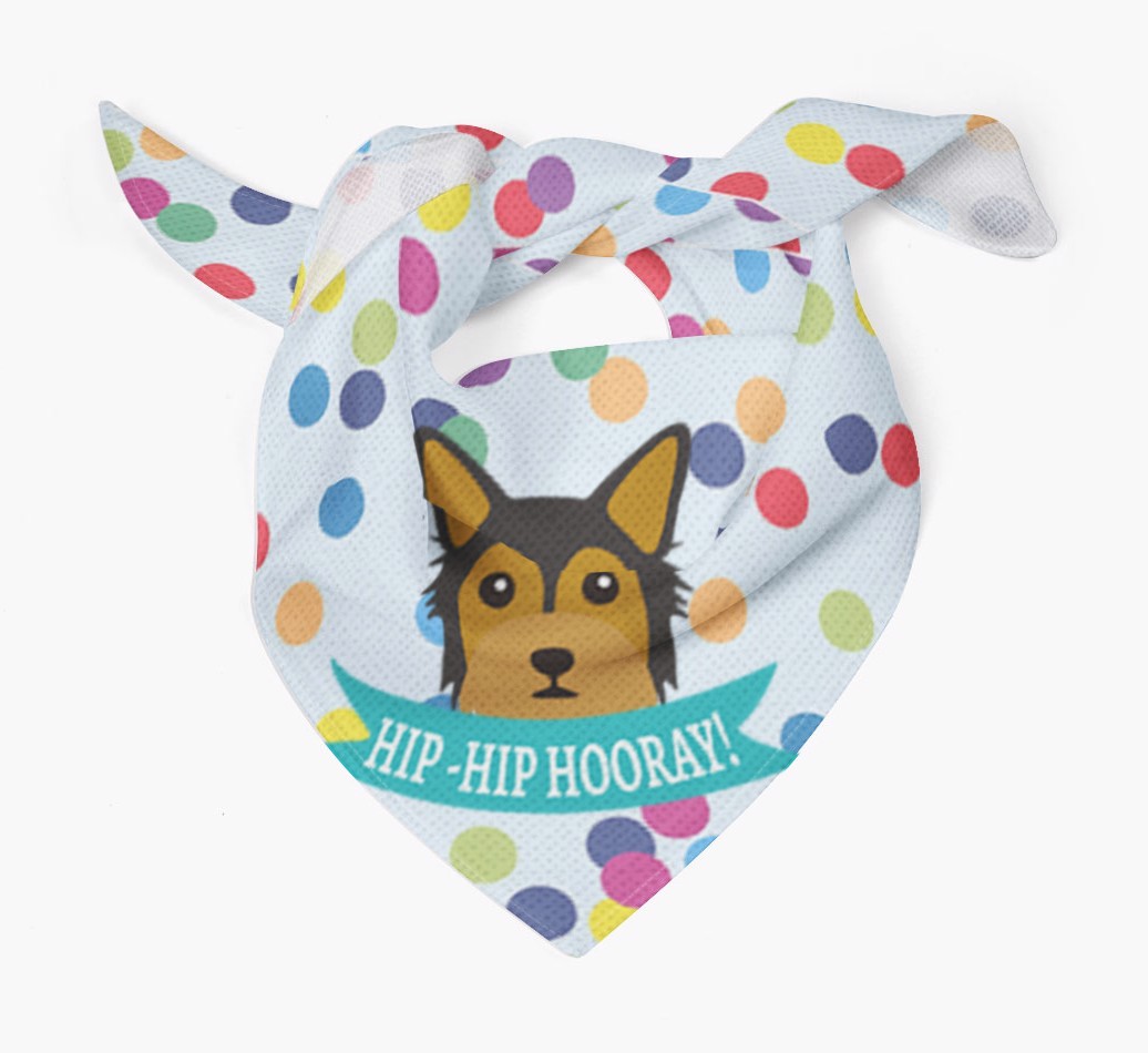 Featuring our famous Chorkie icon and the words ‘hip-hip hooray!’ printed upon a colorful confetti background, Your Chorkie is sure to look pawty ready wearing this bandana.