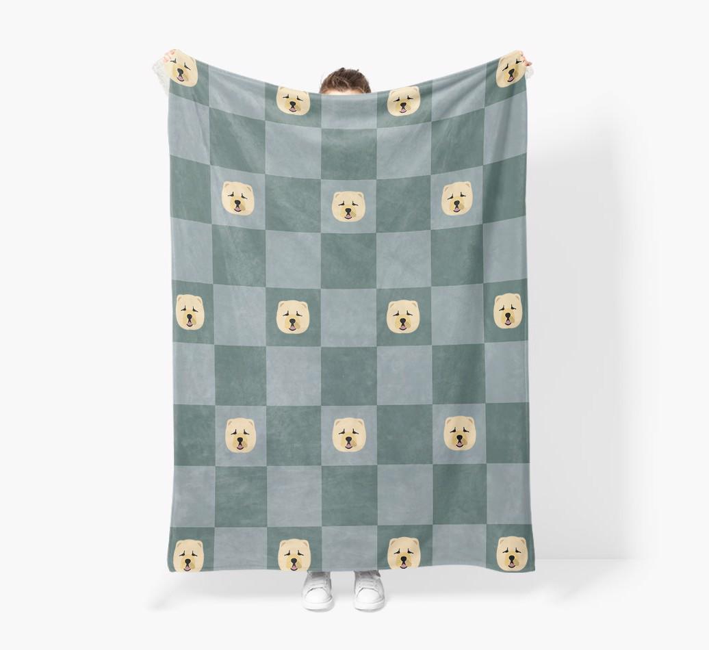 'Checkboard' - Personalized Chow Chow Blanket: Premium Sherpa Fleece