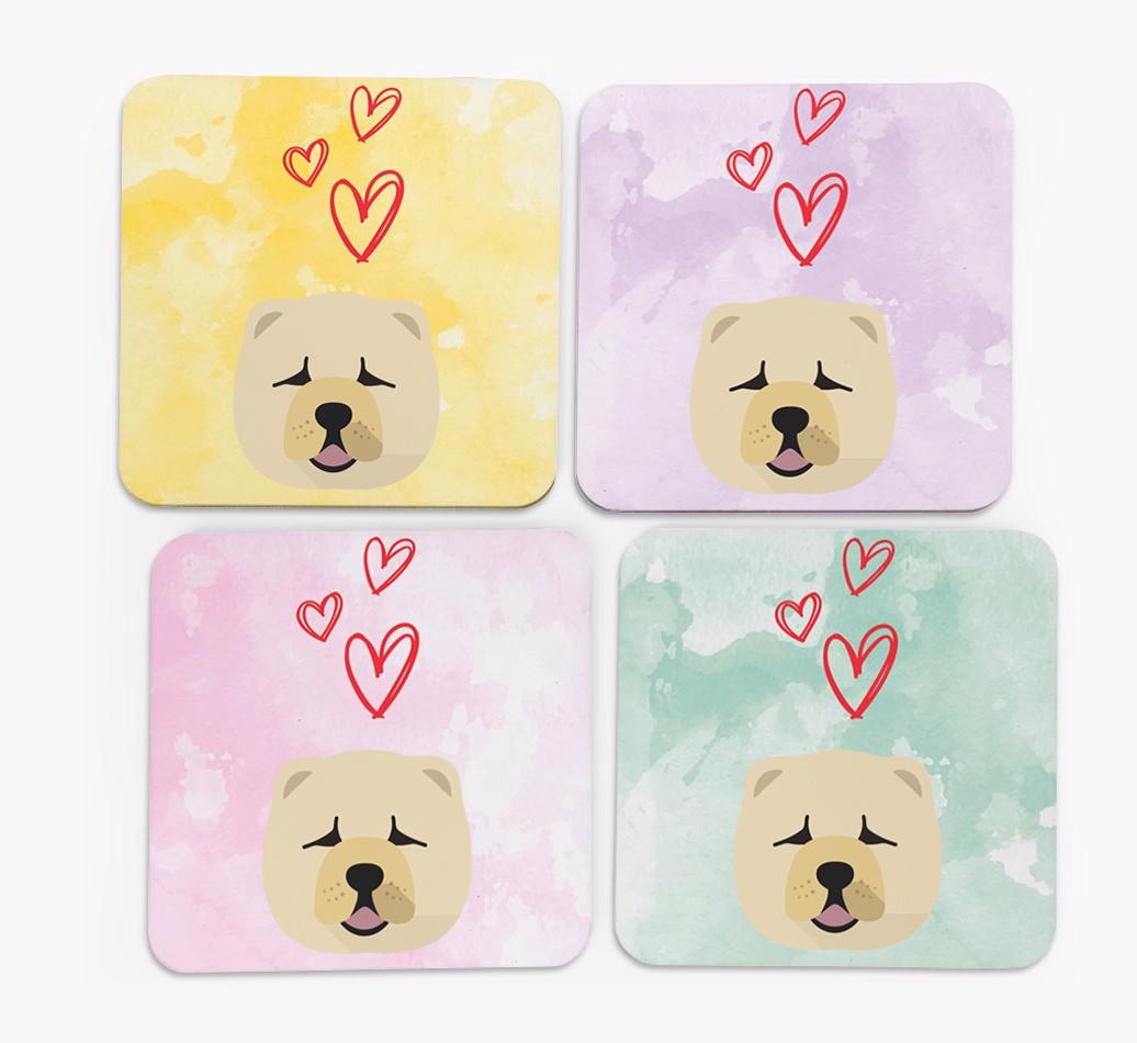 Each coaster comes in a pretty pastel color and features a pawgeous Chow Chow icon, making them the pawfect homeware addition to any Chow Chow lover's home.