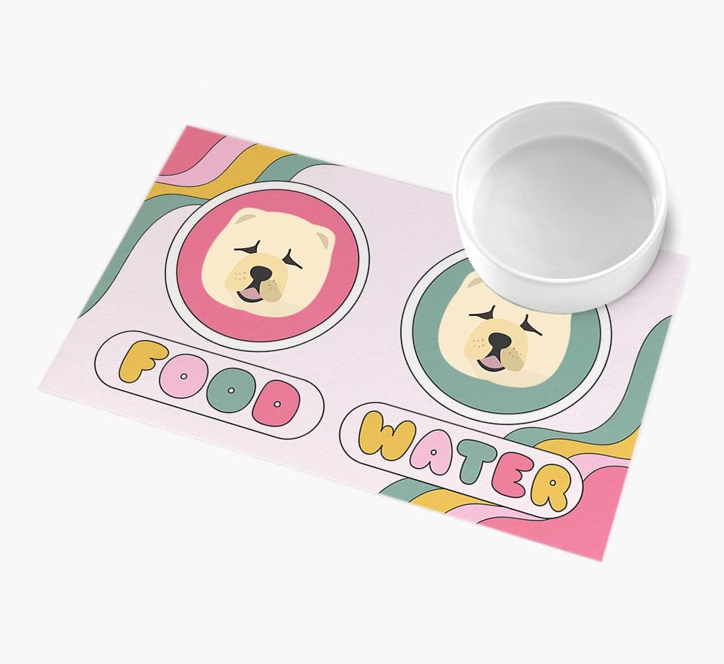With a swirl of pastel colors and the addition of cute Chow Chow icons, this feeding mat is a stylish place to sit Chow Chow’s food and water bowls!