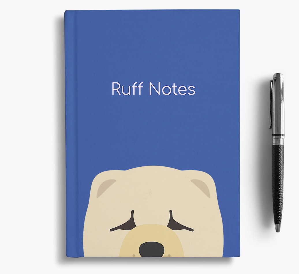 The front cover features our exclusive Chow Chow peeking icon and is printed with the words, ‘Ruff Notes’, whilst the back is printed with the words ‘Live. Laugh. Woof.’.
